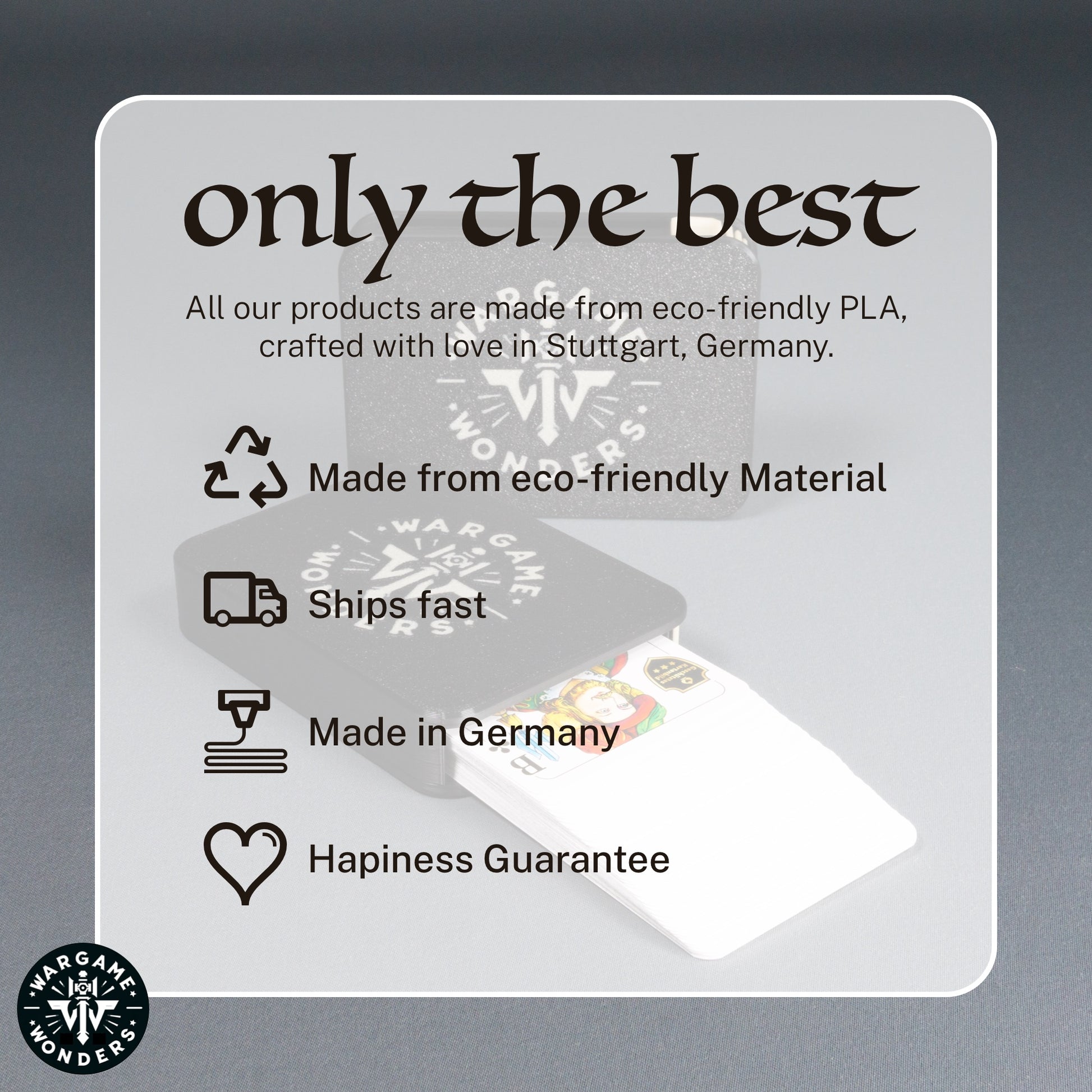Stable, stylish, and practical – the perfect way to keep your cards protected and ready to play. Whether as your personal accessory, a Christmas present, or a customer gift – this box is both eye-catching and useful.
