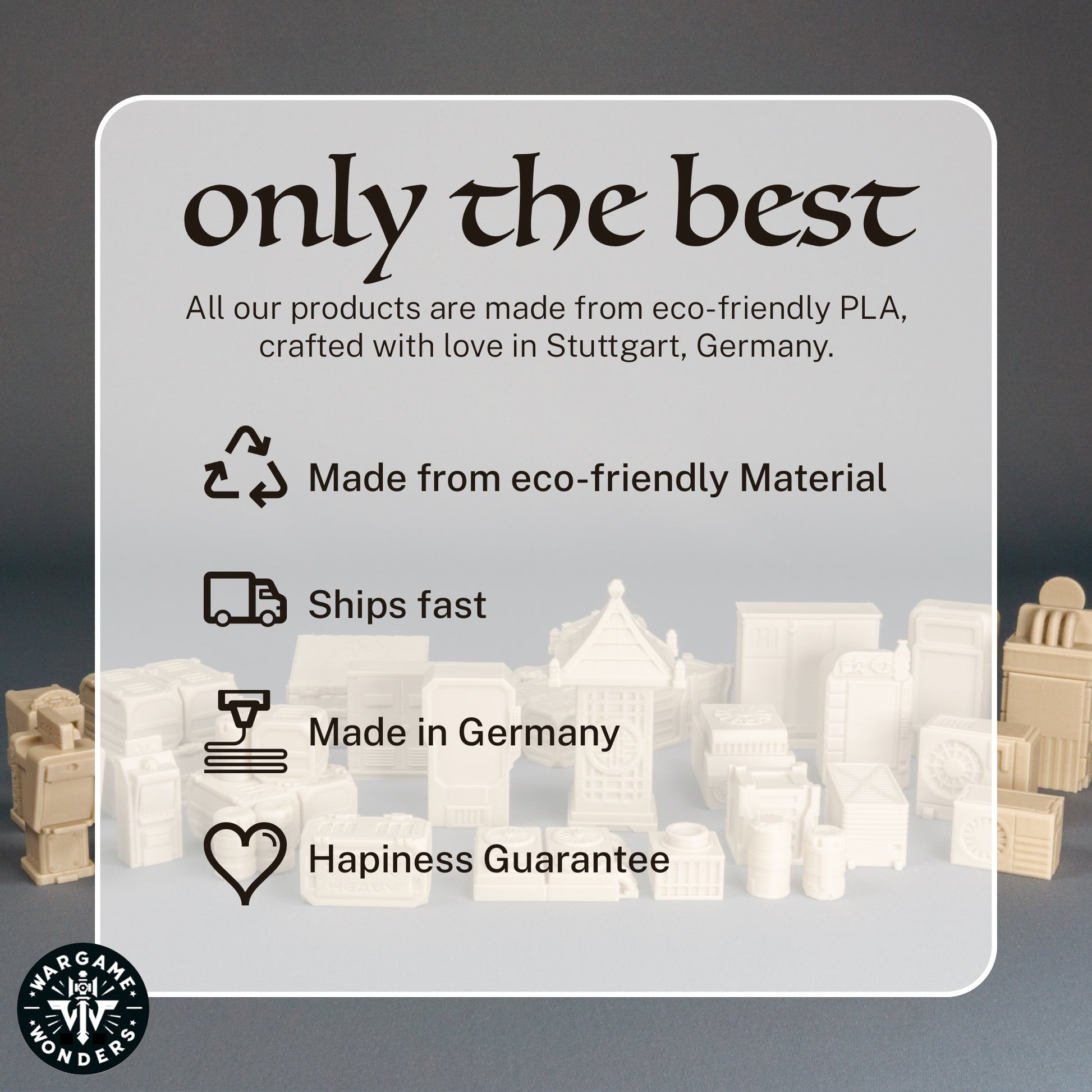 Wir fertigen unsere 3D-Druckprodukte mit größter Leidenschaft und Präzision – und geben nur das weiter, womit wir selbst Freude hätten. Jedes Modell wird sorgfältig geprüft, um sicherzustellen, dass es unseren hohen Erwartungen entspricht. Solltest du dennoch nicht zufrieden sein, bieten wir eine einfache Rückgabe an. Deine Begeisterung für unsere Produkte ist unser Antrieb.